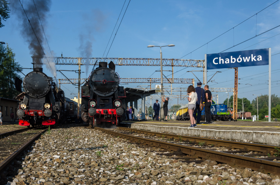 | 20.08.2016r. | Chabówka | Ty42-107 wraz z pociągiem Retro rel. Chabówka (skasnen) – Kasina Wielka oraz po prawej na popychu składu retro OKz32-2 do Zakopanego. |